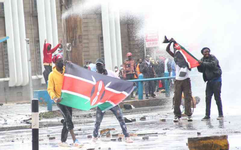 Youth during Gen Z protests in Nairobi. When youth carried the national flag to Parliament in the June and July protests, they were affirming their belonging to the republic.[File, Standard]