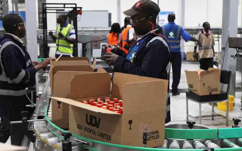 Beer processing chain in action during the Kenya Breweries Ltd (KBL ) Nairobi’s plant tour. [File, Standard]