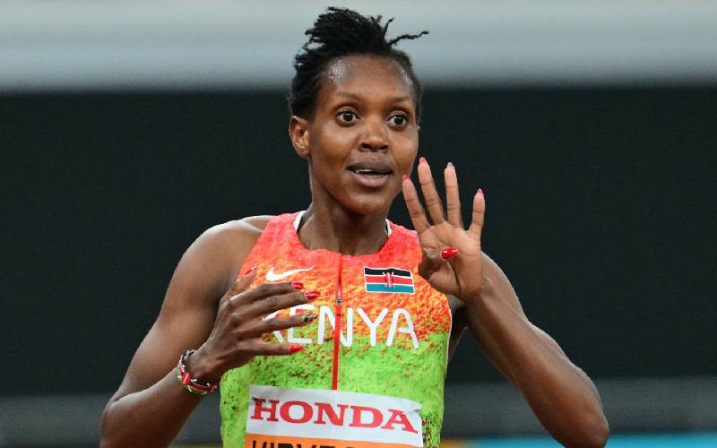 Faith Kipyegon after winning the women’s 1500m final during the World Athletics Championships in Tokyo. [AFP]