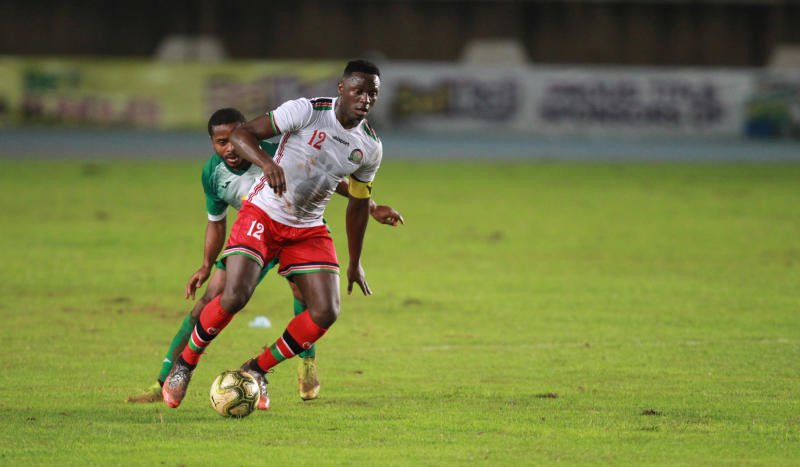 Harambee Stars Victor Wanyama dribbles the ball past Comoros player during Group G match of the 2021 Africa Cup of Nations qualifiers at Kasarani stadium. [Jonah Onyango, Standard]