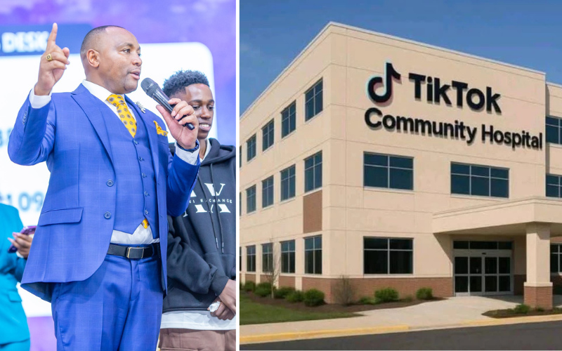 Bishop Ben Kiengei (L) and the proposed Tiktok Community Hospital [Courtesy/Kelvin Maina-Facebook/Tiktok]
