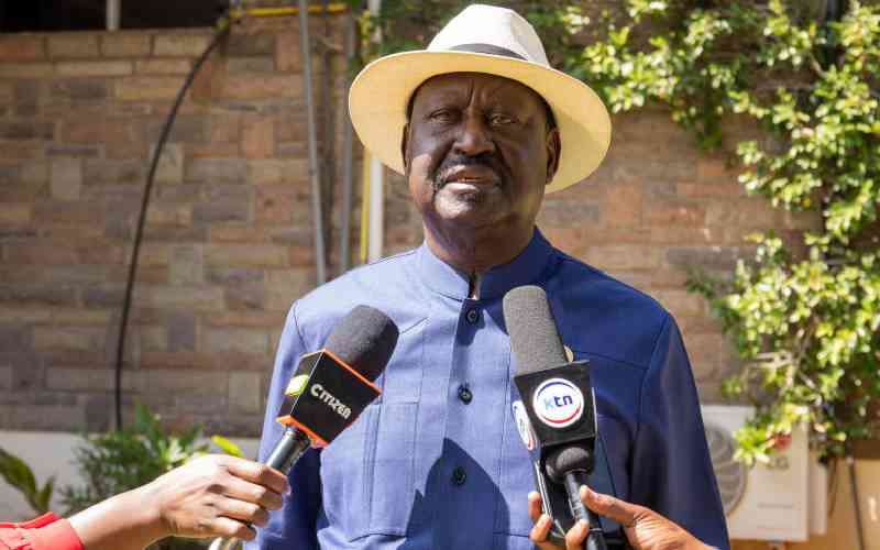 ODM leader Raila Odinga receives a brief on ODM@20 Celebrations in Nairobi, on October 3, 2025. [Emmanuel Wanson, Standard]