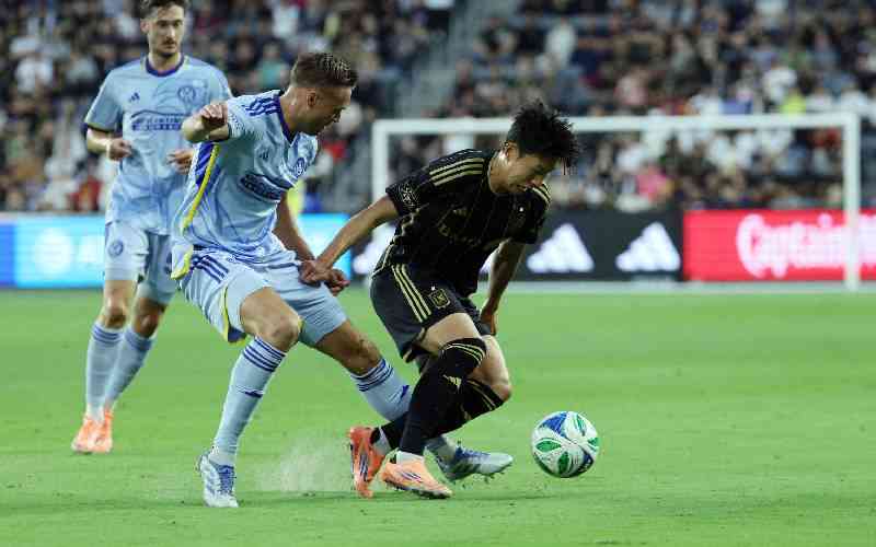 Son Heung-Min #7 of Los Angeles FC is tackled by Stian Gregersen #5 of Atlanta United during the first half at BMO Stadium on October 5, 2025 in Los Angeles, California. [AFP]