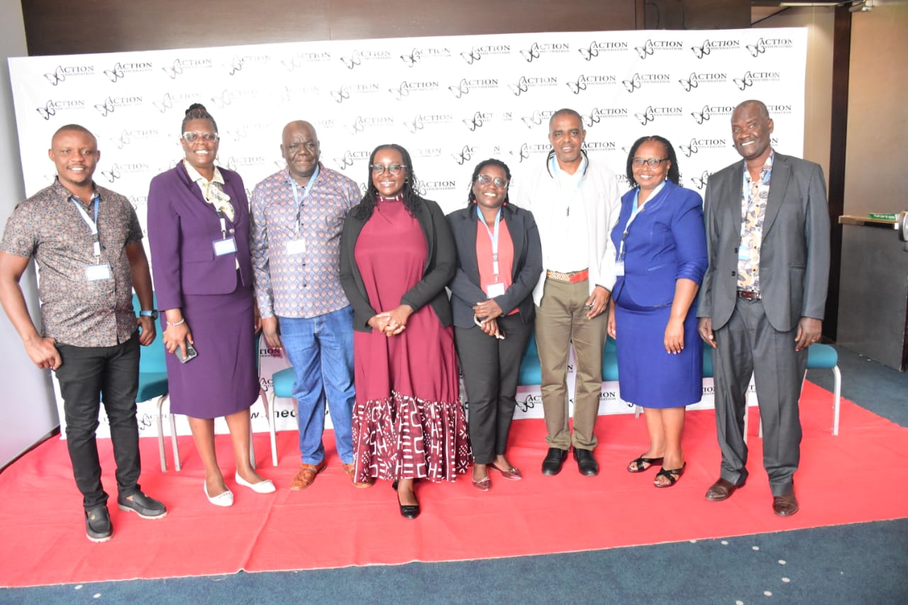 Maria Omare, founder and executive director, The Action Foundation, with national and county representatives during the launch of DIECD in Nairobi. Photo/ Handout