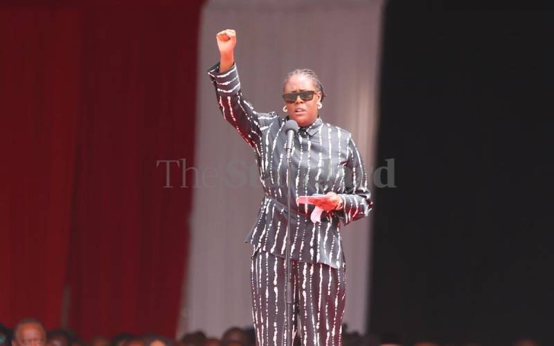 Winnie Odinga making her speeches during the final state funeral  ceremony of former Prime Minister Raila Odinga at Jaramogi Oginga University in Bondo on October 19, 2025. [Stafford Ondego, Standard]