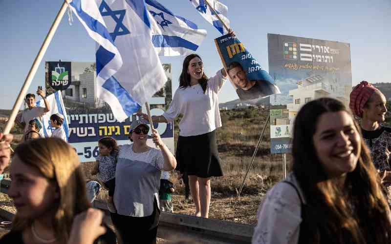Israeli settlers cheer as they wait for the return of freed hostage Avinatan Or in Shiloh in the occupied West Bank on October 21, 2025. [AFP]