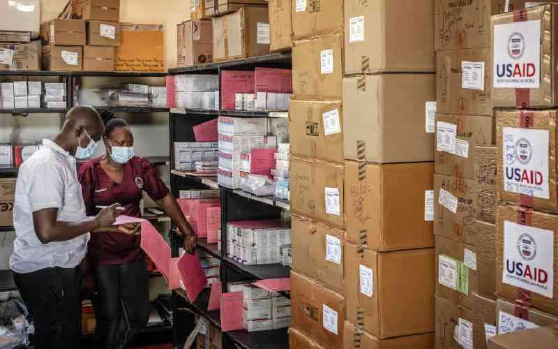 Members of the pharmacology department take inventory of the last boxes of drugs delivered by the now-dismantled United States Agency for International Development (USAID) amid medical supply shortages in a pharmacy storeroom at Lodwar County Referral Hospital in Lodwar on April 1, 2025. [File, Standard]