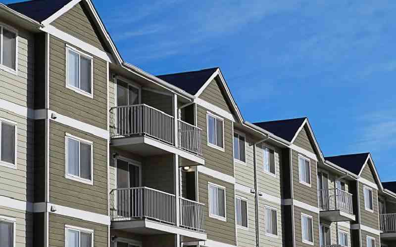 A row of a modern apartment complex development with a bright blue sky.[Getty Images]