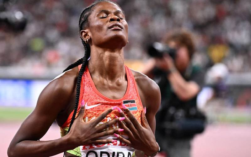 Kenya’s athlete Lilian Odira celebrates winning the women’s 800m final during the World Athletics Championships in Tokyo on September 21, 2025. [AFP]