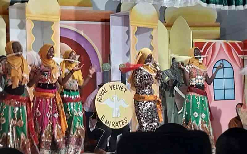 Butere Girls perform a play written by Cleophas Malalah during the Western Region edition of the annual Kenya Schools and Colleges Drama Festival last week. [File, Courtesy]