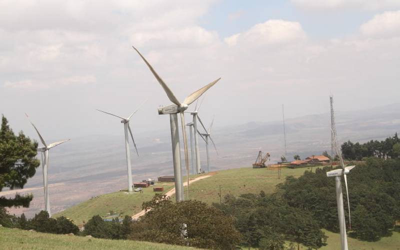Wind turbines at Ngong Hills Wind Power Station in Kajiado County, on October 7, 2023. [File, Standard]