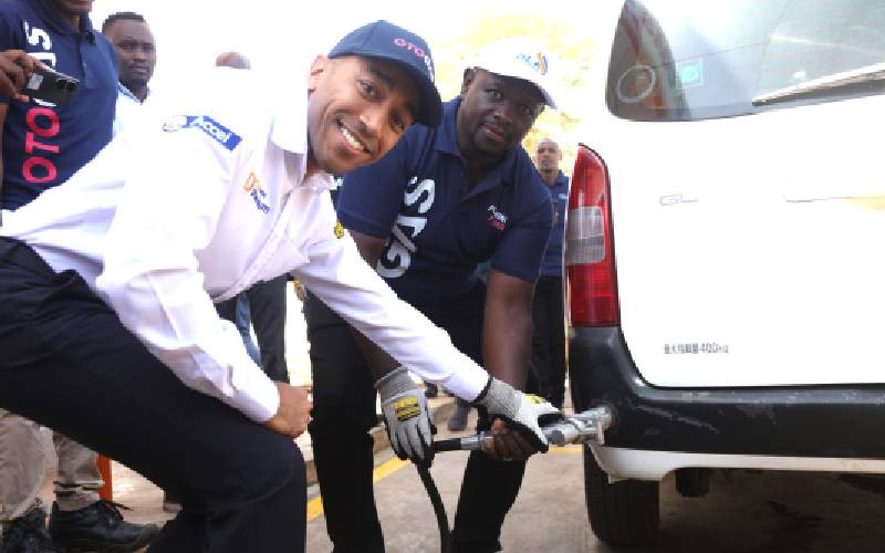 Ola Energy MD Mohamed Elhoderi and Proto Energy CEO Joel Kamau during the official launch of OTO Gas LPG pump at OLA petrol station Buruburu, Nairobi, on January 14, 2026. [Wilberforce Okwiri, Standard]