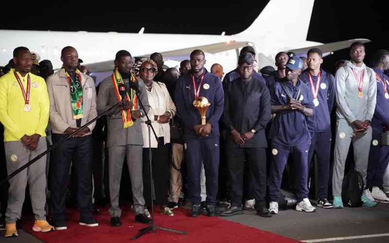Senegal’s players celebrate winning Afcon atop an open bus during a trophy parade in the streets of Dakar on January 20, 2026. [AFP]