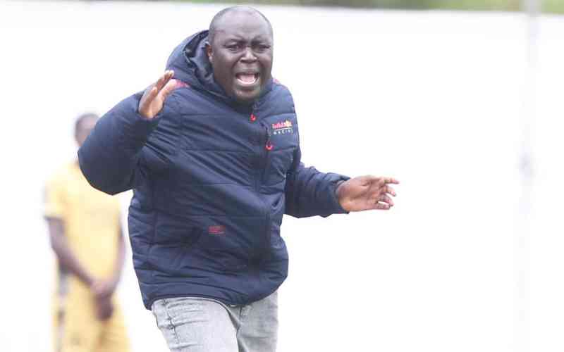 Kenya Police Bullets coach David Bujego reacts during their FKF Women Premier League match against Trinity Starlets. [Jonah Onyango, Standard]