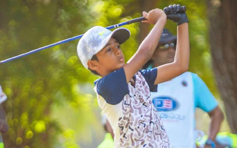 Niall Chauhan in action at Nyali Golf Club course on Sunda. [Maarufu Mohamed, Standard]