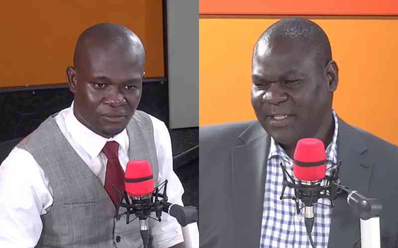 Odhiambo Otieno, a researcher and communication strategist, and Lawyer Duncan Ojwang’ during an interview on Spice FM on February 12, 2026. [Spice FM]