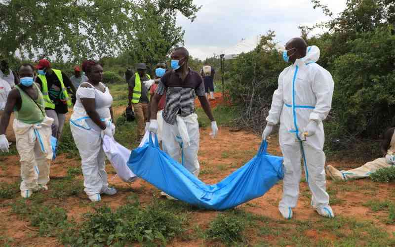 Homicide detectives carrying bodies of cult victims in Shakahola Forest ,Kilifi County. [File, Standard] .fade-out-overlay { .paywall-container { .paywall-header { .price-highlight { .subscribe-button-green { .subscribe-button-green:hover { .features-list { .features-list li { .features-list li:before { .countdown { .countdown div { .countdown .num { .countdown .label { @media (max-width: 768px) { Fact‑first reporting that puts you at the heart of the newsroom. Subscribe for full access. Continue Reading Unlimited access to all premium content Already a subscriber? Log in `; activeEl.innerHTML = “”; } else if (now >= saleStart && now <= saleEnd) { var diffToEnd = saleEnd – now; activeEl.innerHTML = ` Offer ends in… ${days}Days Subscribe Now & Save `; function formatTime(ms) { updateFlashSale(); Follow The Standard Shakahola Deaths Deadly Cult Shakahola Murder Probe Shakahola Massacre Share this article