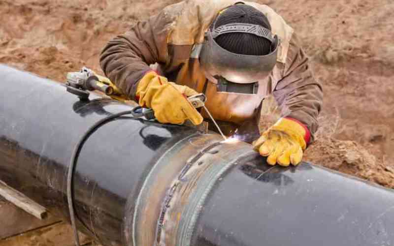 A welder installs electrochemical protection on a trunk pipeline. [file Courtesy]