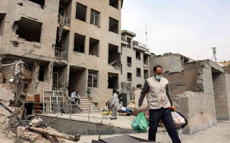 Iranians collect belongings from a damaged residential building in Tehran on March 12, 2026. [AFP]