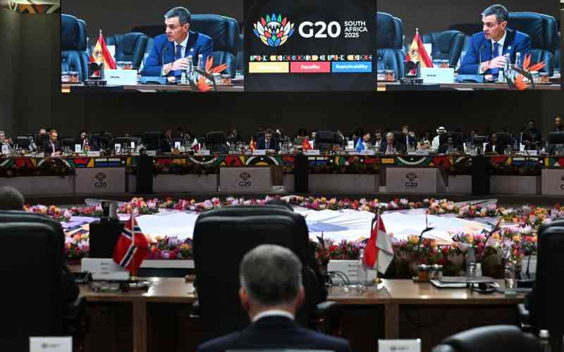 Spanish Prime Minister Pedro Sanchez during a plenary session on the second day of the G20 Leaders’ Summit at the Nasrec Expo Centre in Johannesburg on November 23, 2025. [AFP]